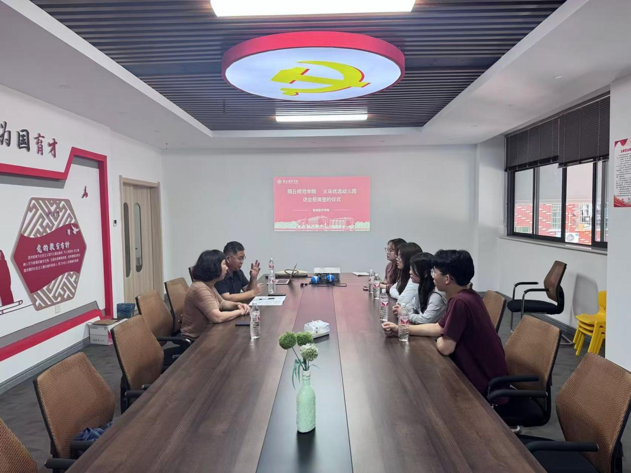 学院一行来到浙江省义乌市优选幼儿园开展实践调研,走进课堂观摩教学实践,与学校校长、骨干教师进行面对面交流。在座谈中,邱友谊介绍了我院基本情况,着重强调我院坚持把培养学生思想品德和教学能力放在工作第一位,双方围绕“新时代教师核心素养”“师范生实践能力培养”“校地协同育人机制” 等核心议题展开深入探讨,并签订就业实习基地协议书。