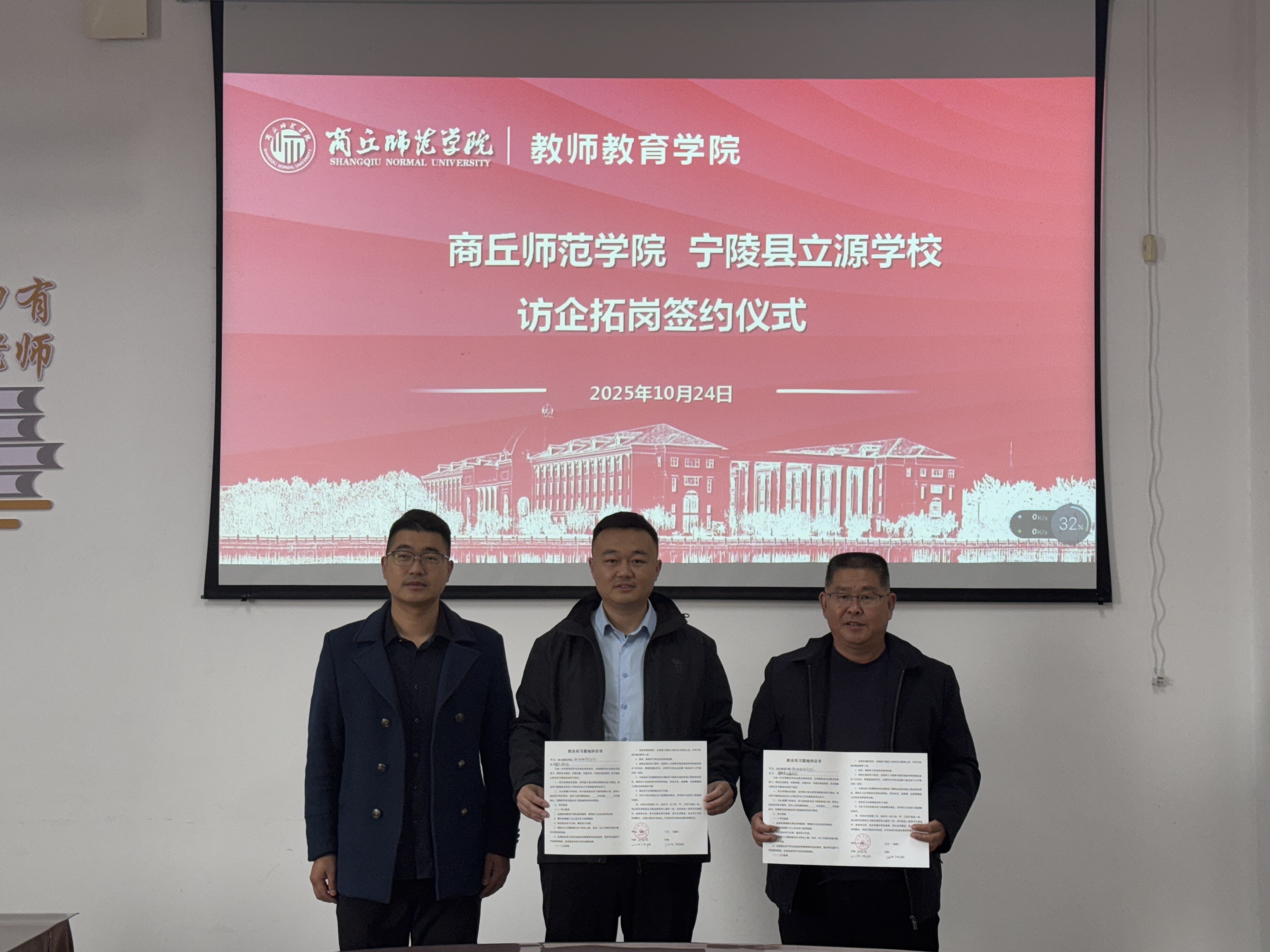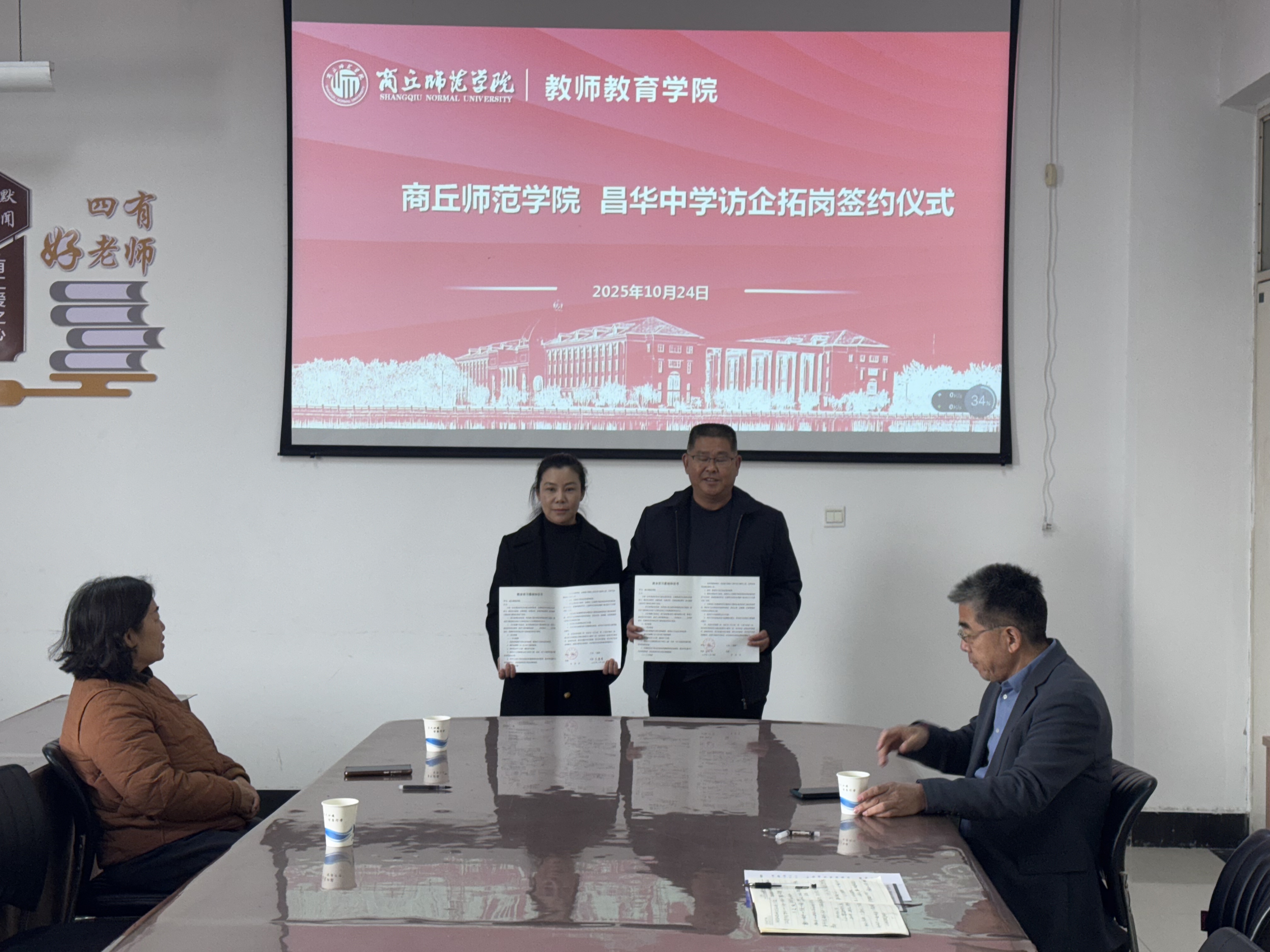 10月24日,beat365在线唯一官网以beat365在线唯一官网2026届毕业生秋季双向选择洽谈会为契机,于汉梁楼203会议室开展访企拓岗促就业专项行动。学院邀请商丘市示范区昌华中学、宁陵县立源学校、荥阳春生艺术学校三家单位来我院商谈毕业生实习就业校企合作项目,党委副书记邱友谊、毕业班辅导员朱冠宇以及三家单位相关负责人参加签约仪式。