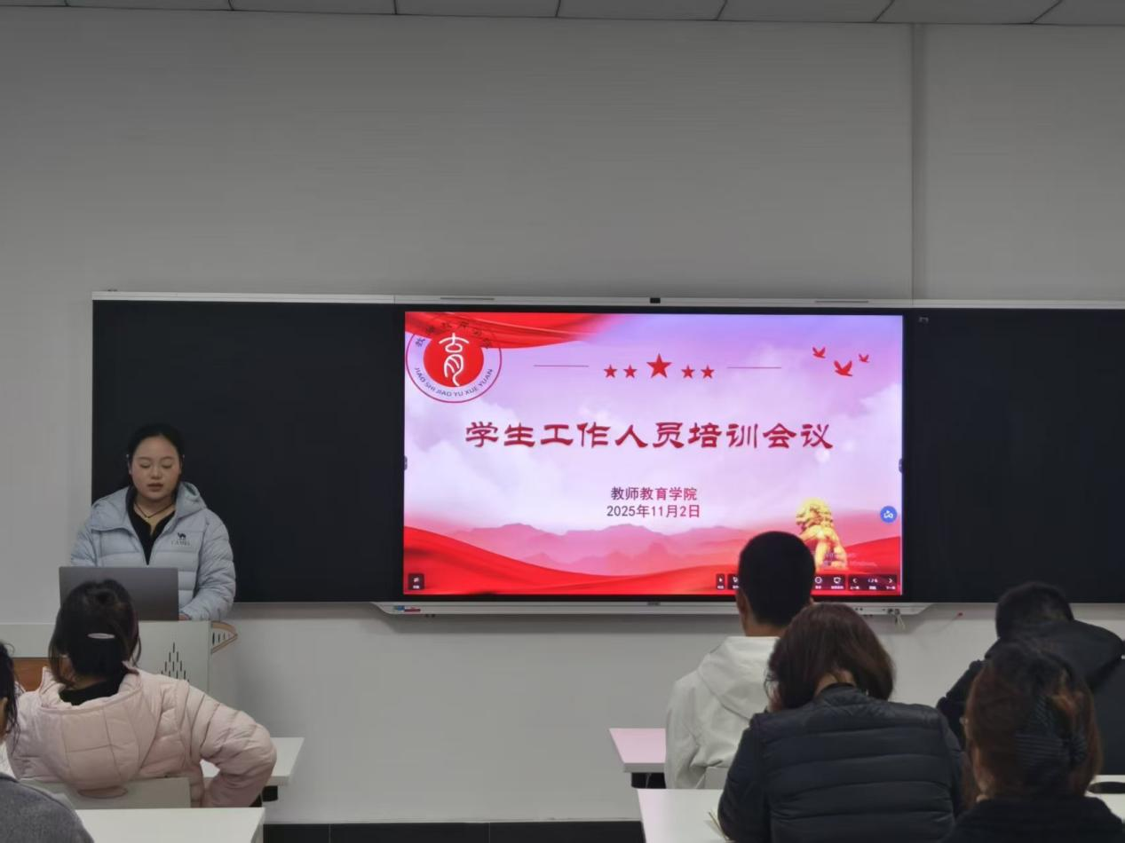 11月2日,beat365在线唯一官网于汉梁楼112教室开展团干部和学生干部联合培训,旨在提升综合素养与工作能力,强化学生骨干队伍建设。培训由院团委书记董若颖主持,全院团干部、班级学生干部参与。