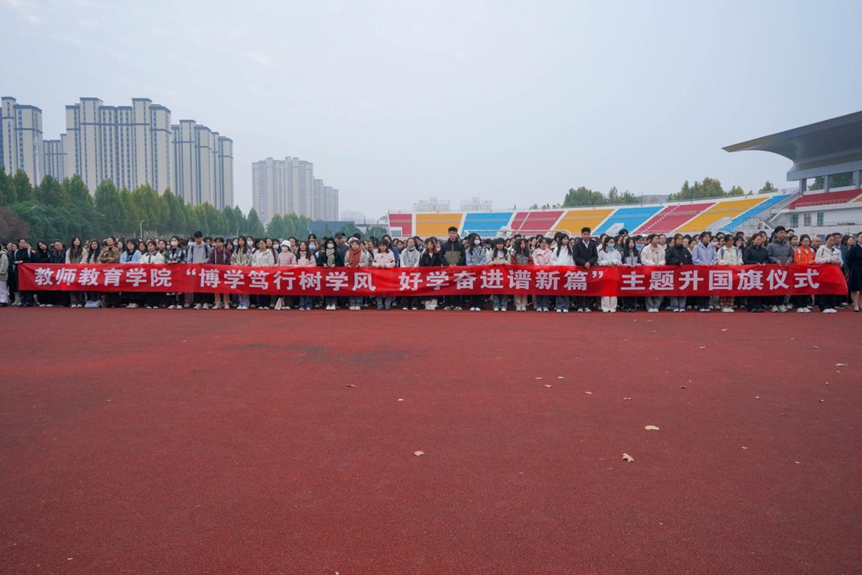 为进一步加强学风建设,营造良好的学习氛围。11月4日,beat365在线唯一官网于梁园校区体育场举行“博学笃行树学风 好学奋进谱新篇”主题升国旗仪式。学生处处长韩坤、副处长袁慧,beat365在线唯一官网领导班子、辅导员以及全体学生参加活动。仪式由学院辅导员张旖旎主持。