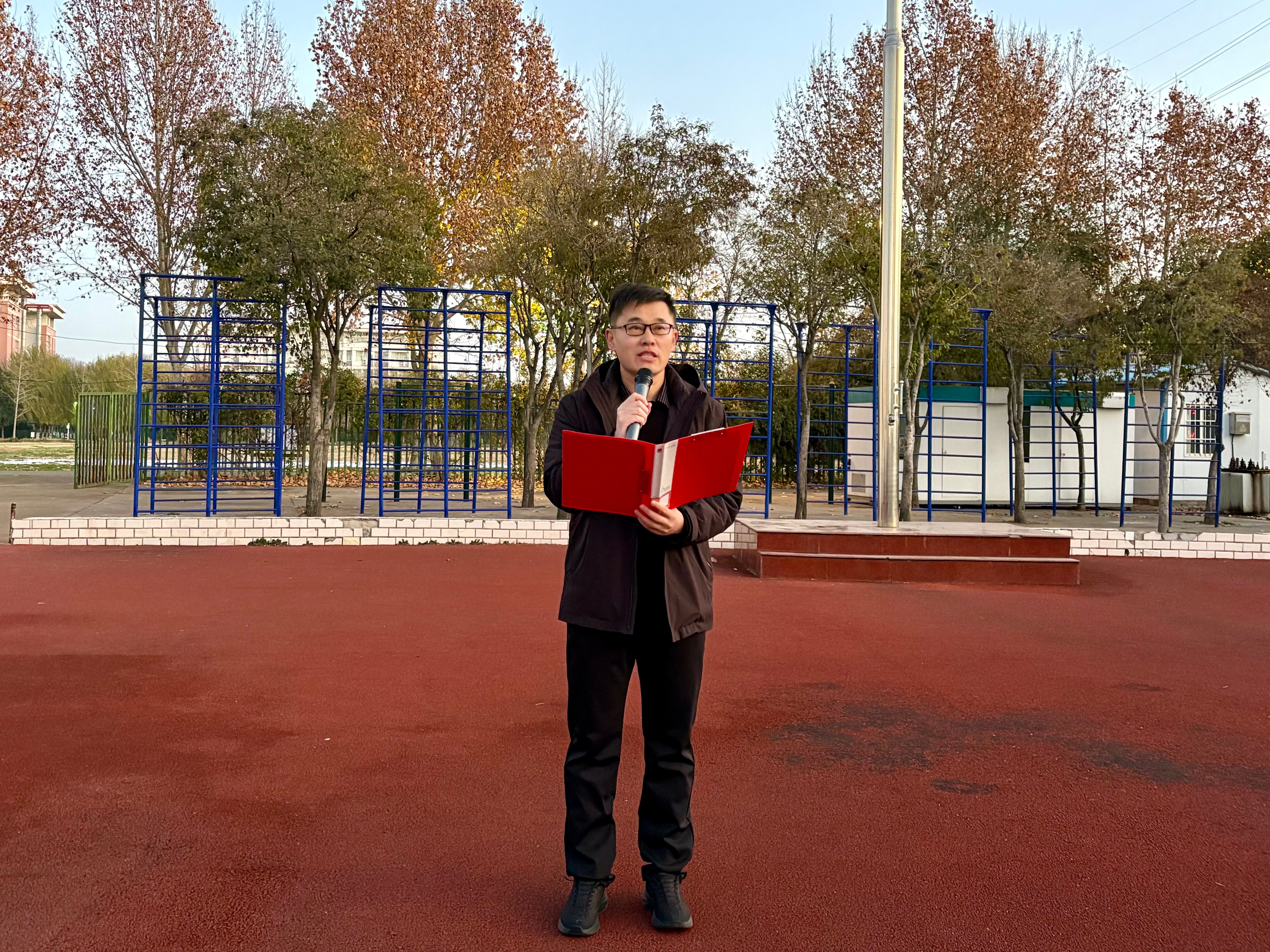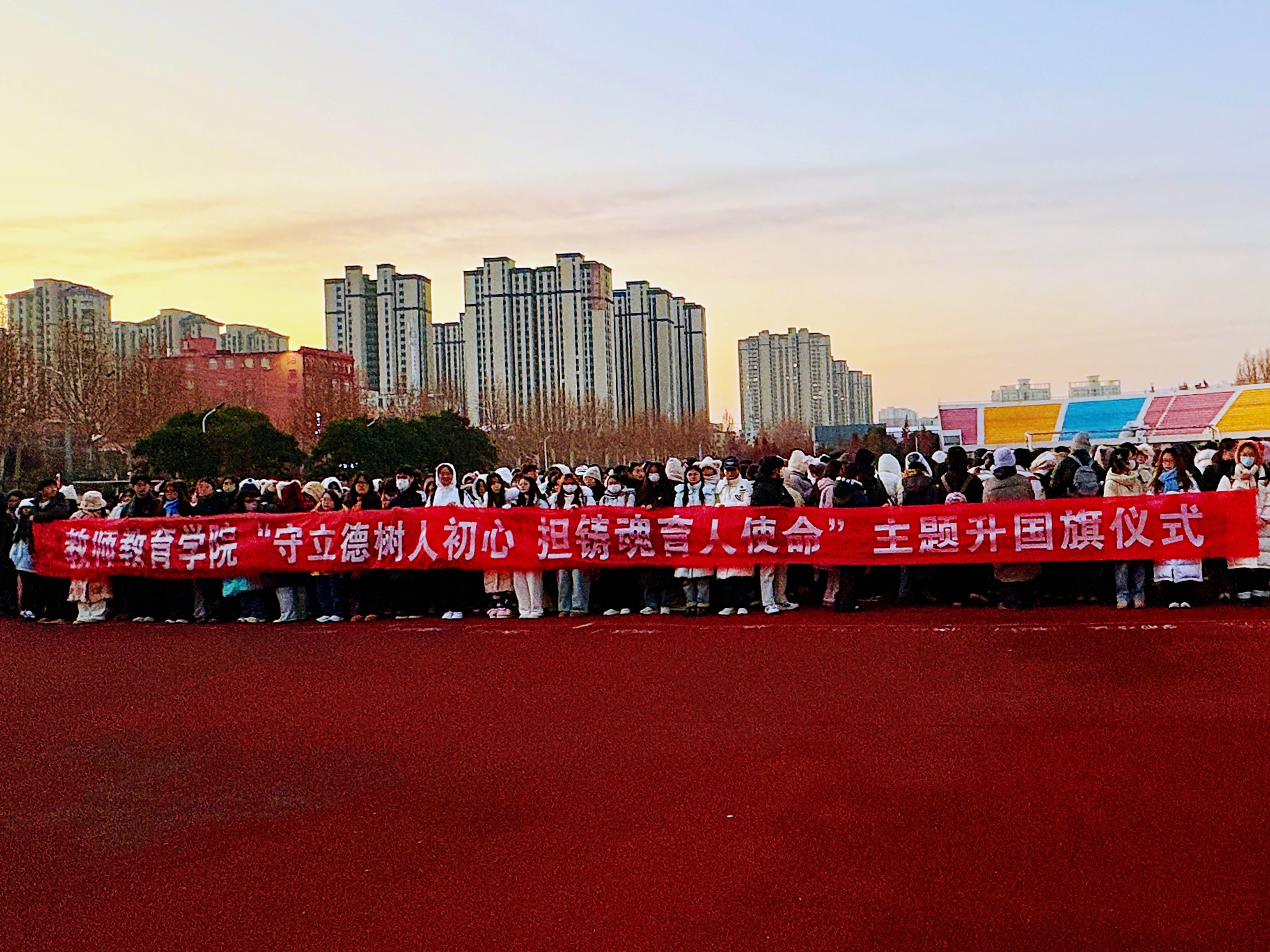为深入学习贯彻党的二十届四中全会精神,引导全体师范生自觉将个人理想融入党和国家教育事业发展全局,12月15日,beat365在线唯一官网于梁园校区体育场举行升旗仪式。学生处副处长袁慧、学院领导班子、辅导员、班主任以及全体学生参加活动。仪式由学院学工办副主任张旖旎主持。