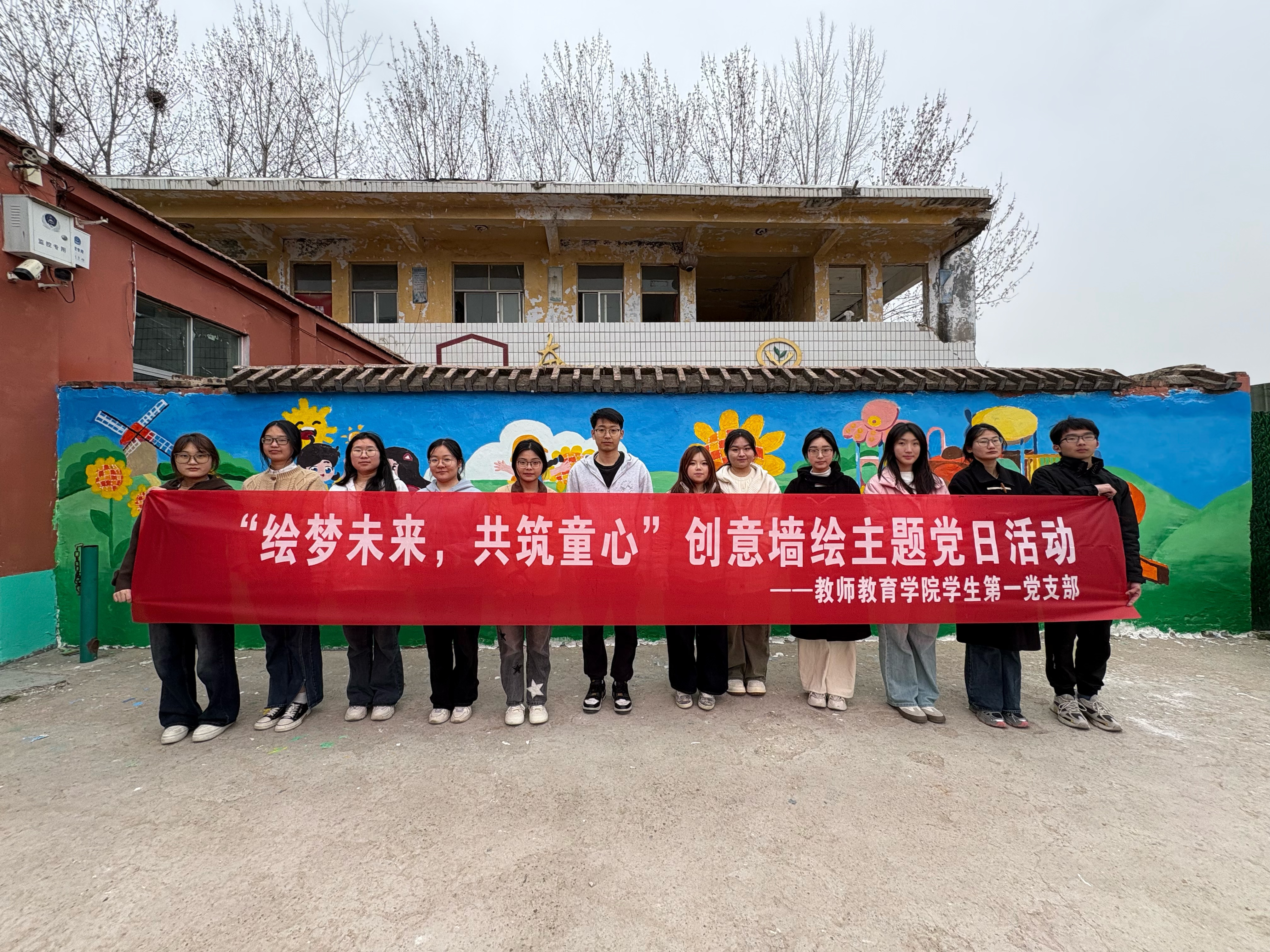 为大力弘扬雷锋精神,2025年3月14日,beat365在线唯一官网学生第一党支部于商丘市田庄小学,开展了“绘梦未来,共筑童心——雷锋精神进校园”创意墙绘主题党日活动。