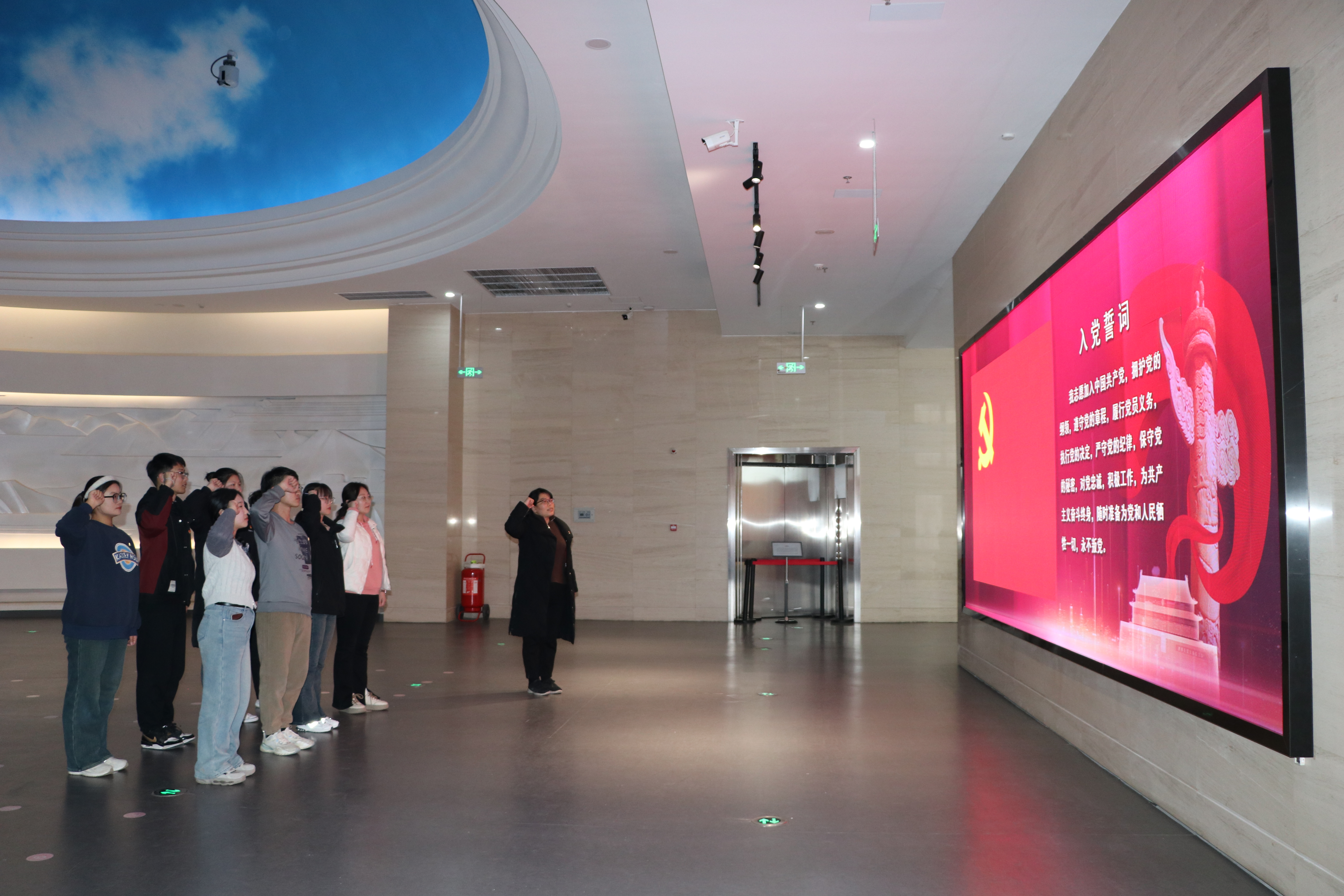 参观结束后,学生第二党支部书记董若颖带领全体学生党员重温入党誓词,时刻警醒自己要坚定理想信念,牢记党员身份,传承杨靖宇精神,不忘初心使命,勇担时代使命。