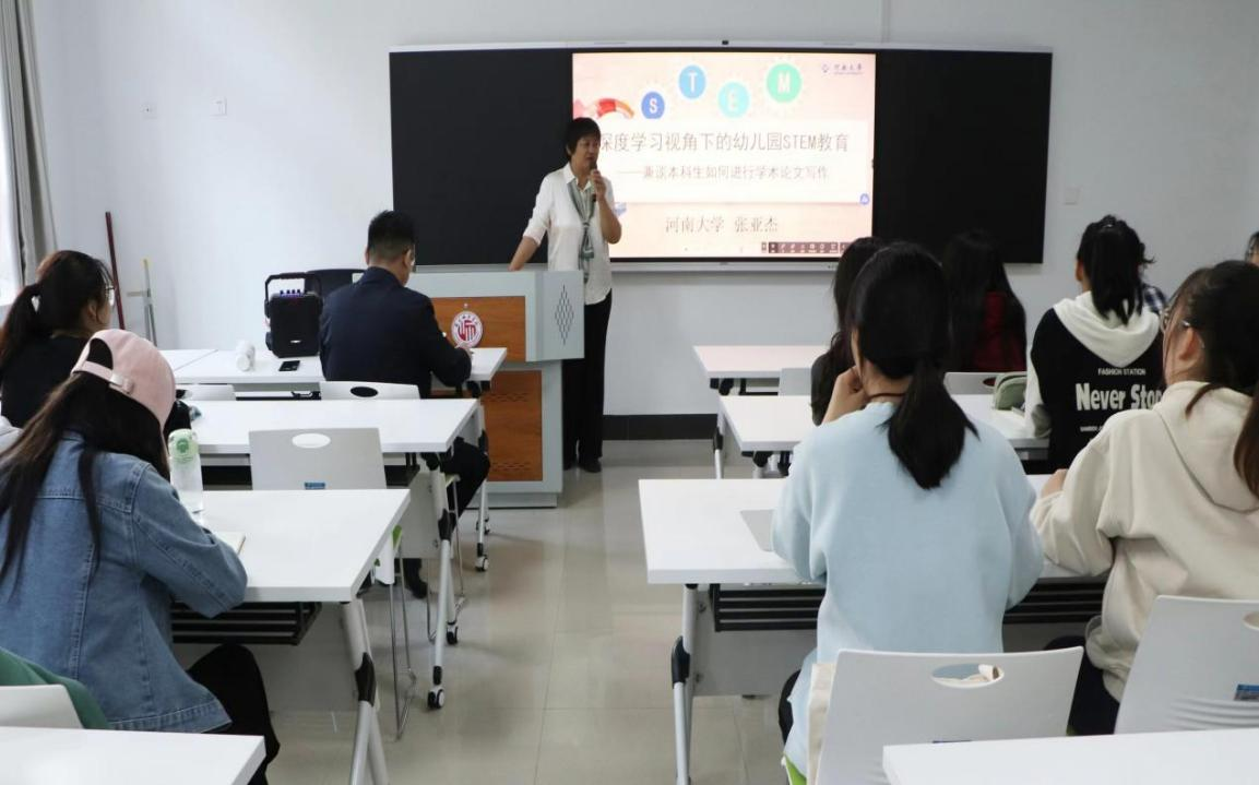 4月17日,河南大学教育学院学前教育系主任张亚杰老师应邀为beat365在线唯一官网学前教育专业师生做题为“深度学习视角下的幼儿园STEM教育——兼谈本科生如何进行学术论文写作”的学术报告。本次报告由beat365在线唯一官网副院长李战营主持,学前教育专业学生和部分教师参加。