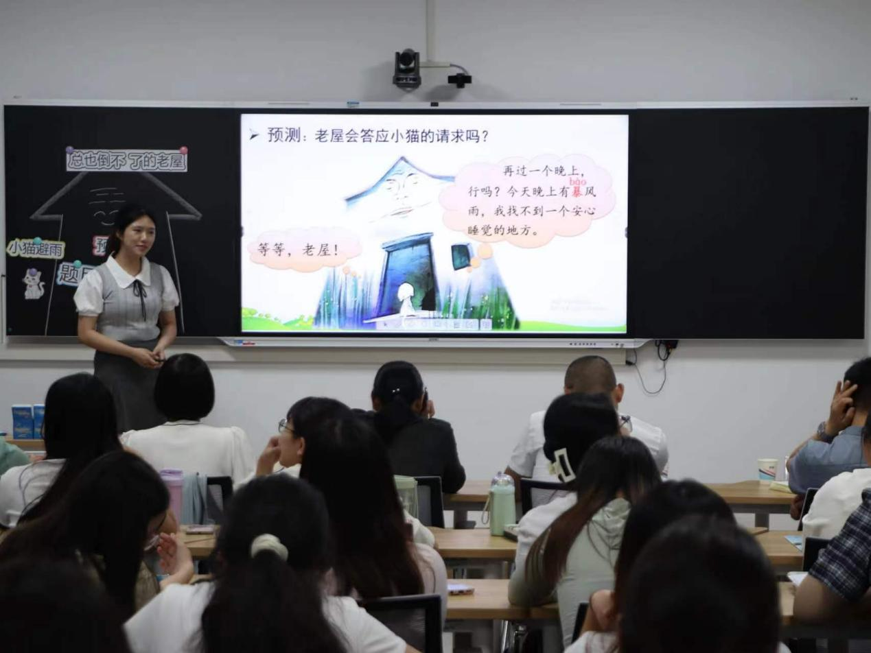 教学展示完毕,评委张捷老师对学生的精彩表现进行了总结点评。张捷老师认为各位参赛选手教学思路清晰,教学过程设计合理,语言表达准确精炼,能紧扣部编版教材的单元语文要素,同时也指出选手们需要改进的地方,知不足而奋进,望远山而前行。