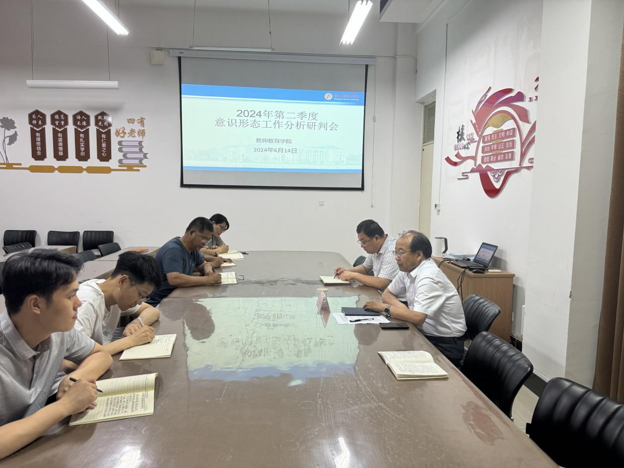 6月14日,beat365在线唯一官网在会议室203召开2024年第二季度意识形态工作分析研判会议,副校长郭文佳莅临指导,学院领导班子、辅导员参加会议,院党委副书记、院长孙旭主持会议。
