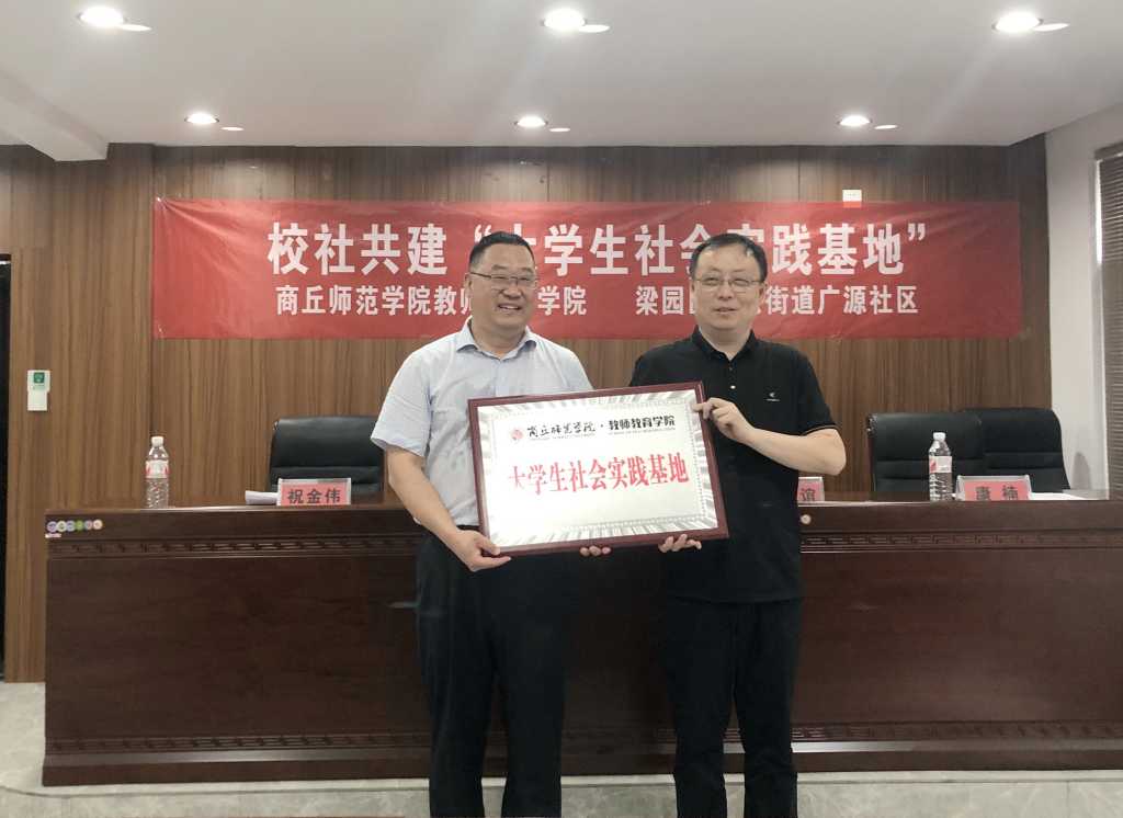 为推动党建联建创新引领,提高大学生了解社会实际、服务人民群众的能力,促进校社双方在党建引领、服务基层等方面的深度融合,持续深入开展“五星支部”创建,近日,beat365在线唯一官网与商丘市梁园区白云街道广源社区举行校社共建“大学生社会实践基地”挂牌仪式。院党委副书记、院长孙旭,副书记邱友谊,商丘市梁园区白云街道办事处党工委书记祝金伟及白云街道广源社区领导班子成员出席此次活动。