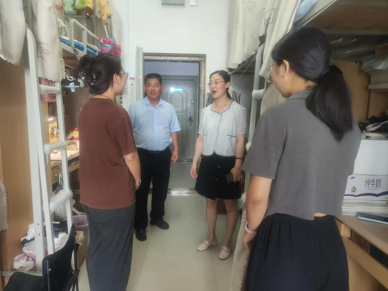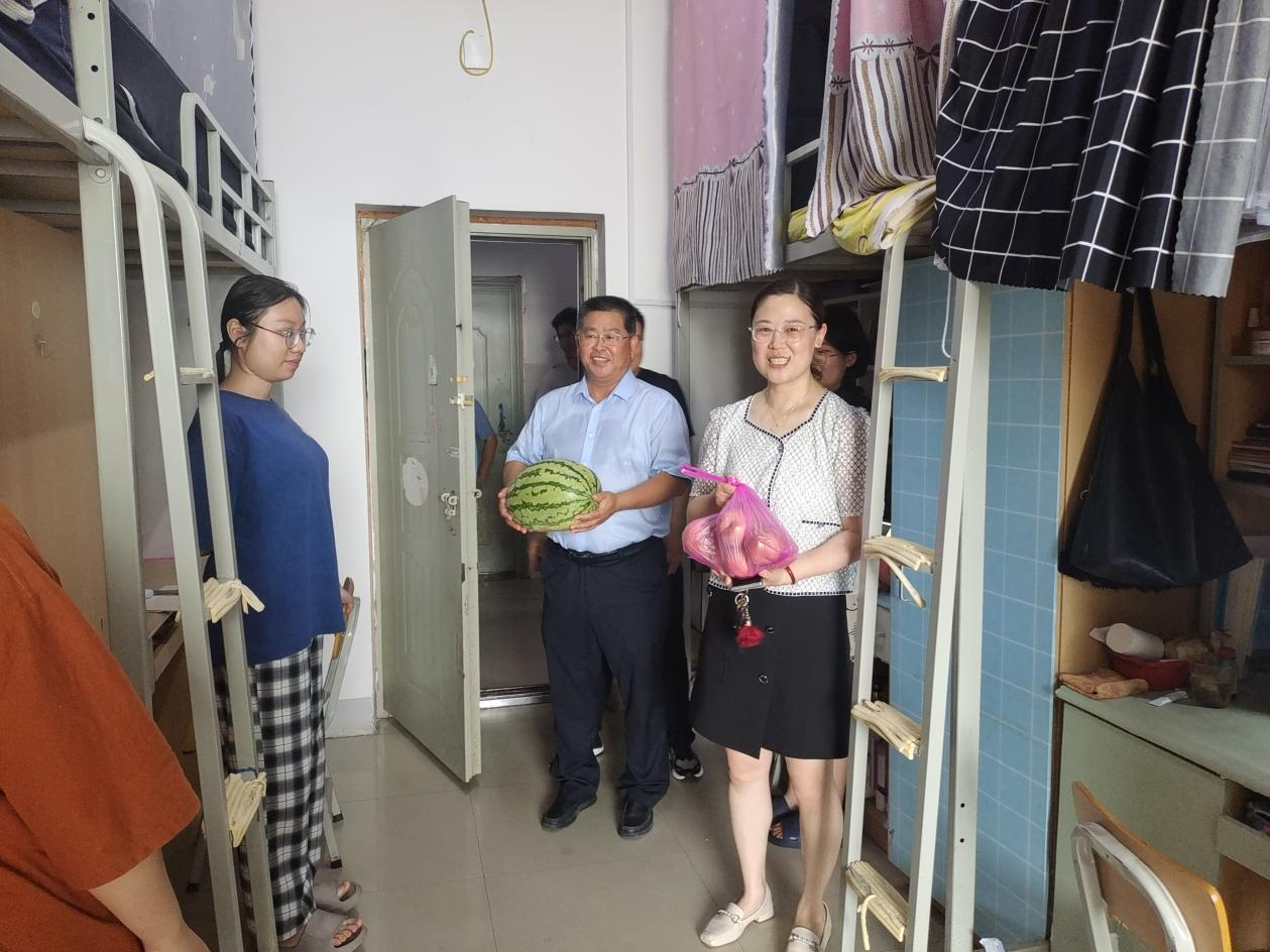 为进一步做好留校学生的安全管理工作,把对学生的关心关怀落到实处,7月21日上午,beat365在线唯一官网党委书记郭宁、院长孙旭携学院领导班子及毕业班辅导员到学生宿舍看望慰问留校备战的考研学子们。