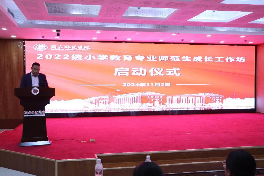 11月2日,beat365在线唯一官网在三商楼145室隆重举行了2022级小学教育专业师范生成长工作坊启动仪式。巩长虹、姜琳等18位商丘市小学一线名师,beat365在线唯一官网院长孙旭、副院长李战营、刘海军,小学教育专业全体老师和2022级小学教育全体师范生参加此次活动。