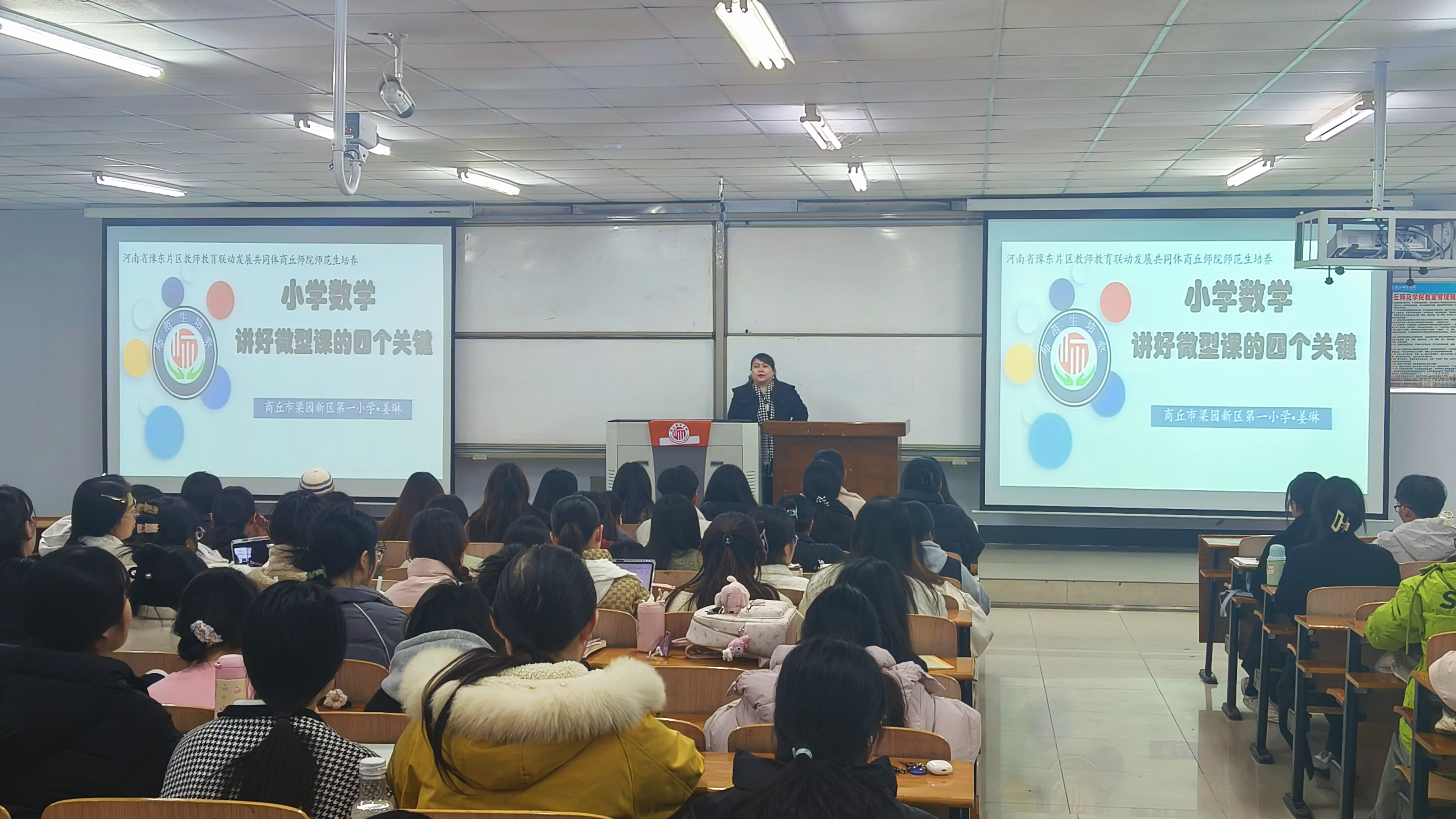 为深化师范生专业技能培养,特别是在微型课教学设计领域的精进。11月29日,beat365在线唯一官网在智圆楼123室举办了小学教育专业师范生成长工作坊之《讲好微型课的四个关键》专题讲座。本次讲座由商丘市梁园新区第一小学副校长姜琳主讲,小学教育专业22级全体坊员参加。