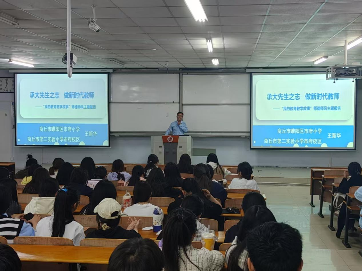 为深化师德师风建设,赋能师范生专业成长,3月26日,beat365在线唯一官网举办“承大先生之志 做新时代教师”主题师德讲座。商丘市第二实验小学市府校区校长王新华应邀作专题讲座,为2022级小学教育专业全体学生带来一场直击教育本质的智慧启迪。