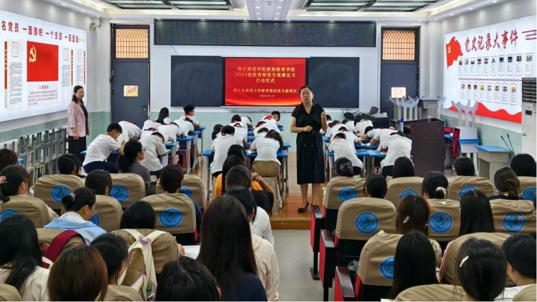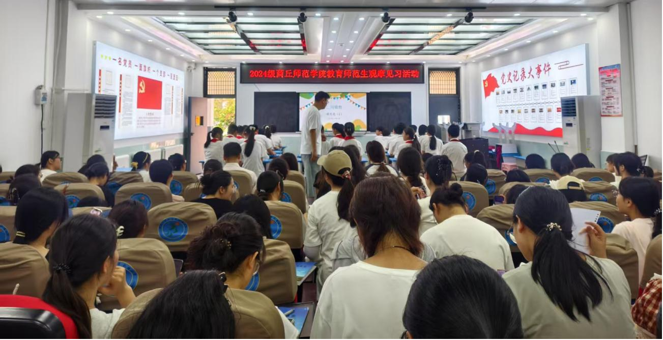 校外观摩阶段,首先是商丘市前进小学教育集团昆仑路校区教导处陈昊主任对于全体师生的到来表示热烈欢迎,并希望师范生们可以在教育见习的过程中提高自身专业水平,为成为一名合格的新时代四有好老师打下坚实基础。